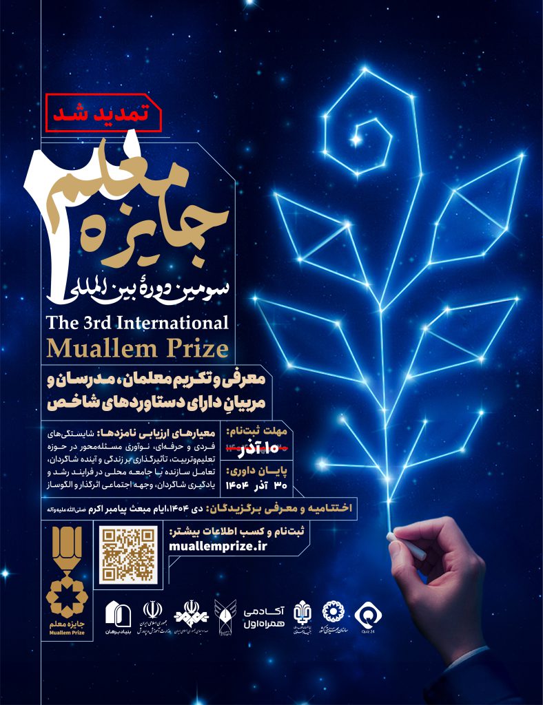 معلمان و مربیان میتوانند تا ٣٠ آذر ١٤٠٤ با مراجعه به وبگاه رسمی  این جایزه به نشانی