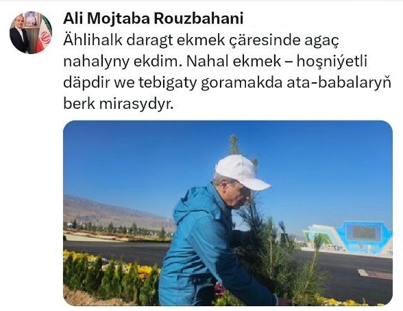 Eýran Yslam Respublikasynyň ilçisiniň X (Twitter) kanalynda neşir eden ýüzlenmesi